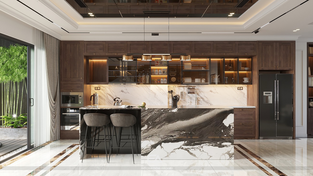 - Tạo sự liên kết giữa khu vực bếp với không gian sinh hoạt khác.