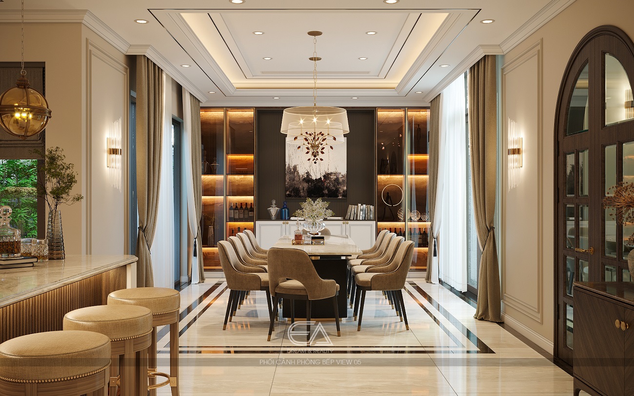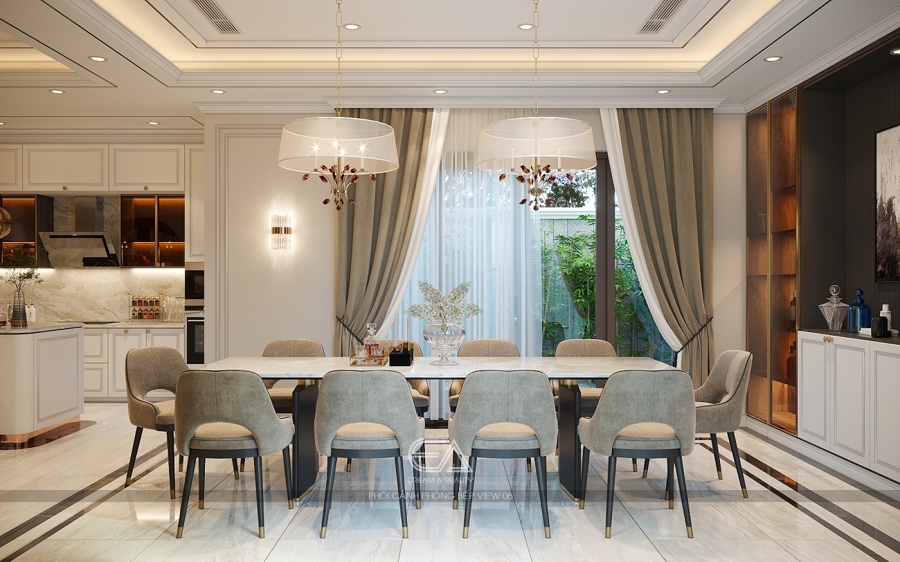 Phòng bếp và phòng ăn là nơi nấu nướng và thưởng thức những bữa ăn ngon của gia đình. Cần bố trí phòng bếp và phòng ăn liên thông với nhau, tạo sự thuận tiện cho việc nấu nướng và dọn dẹp. Nội thất phòng bếp cần được lựa chọn kỹ lưỡng, đảm bảo sự tiện nghi, sạch sẽ và an toàn.
