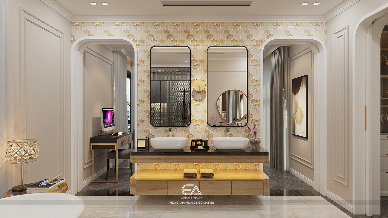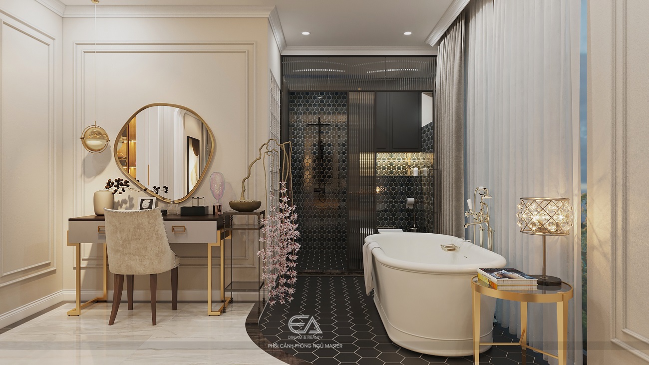 Phòng tắm là không gian vệ sinh cá nhân, cần được bố trí sạch sẽ, thoáng mát và tiện nghi. Nên sử dụng các thiết bị vệ sinh cao cấp, có tính năng tiết kiệm nước và thân thiện với môi trường.